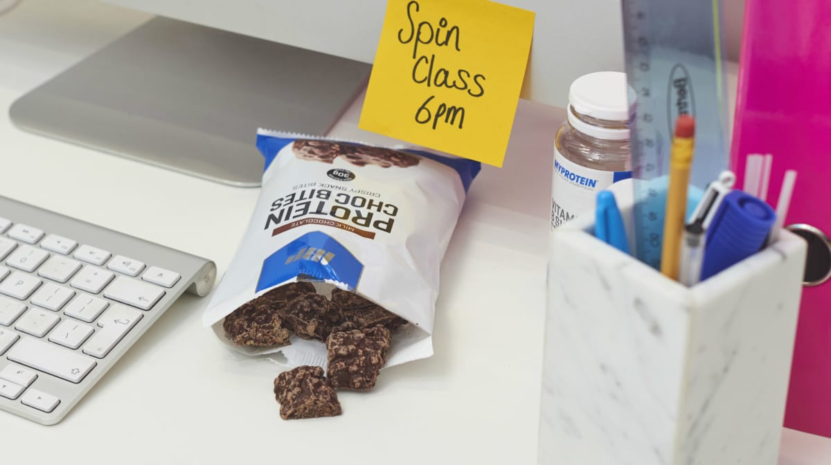 既然谈到食物这个话题了,我们建议你确保身边备有一些健康的零食小吃 — 可以是苹果或者花生酱,还有一些便利的蛋白质零食、自制营养零食等。 当你真的很饿需要吃零食时,也不要一下子吃光办公桌的饼干罐(对,大家都有一个饼干罐!)